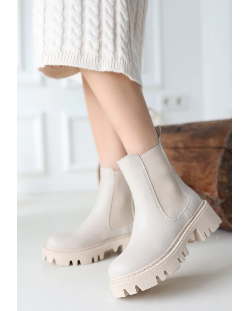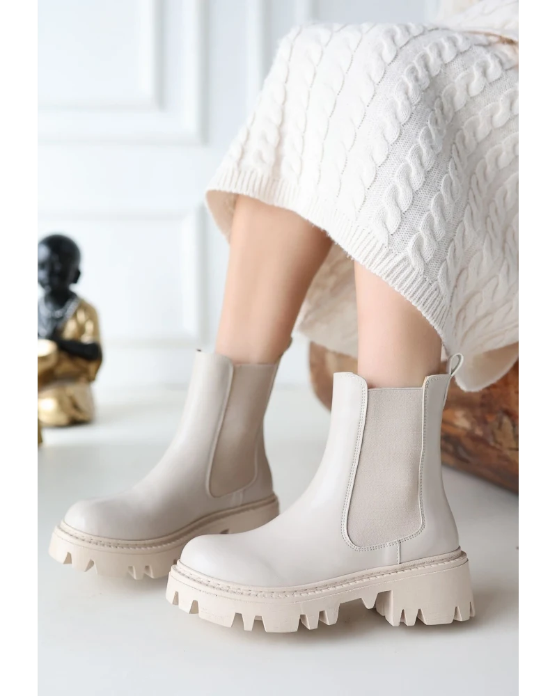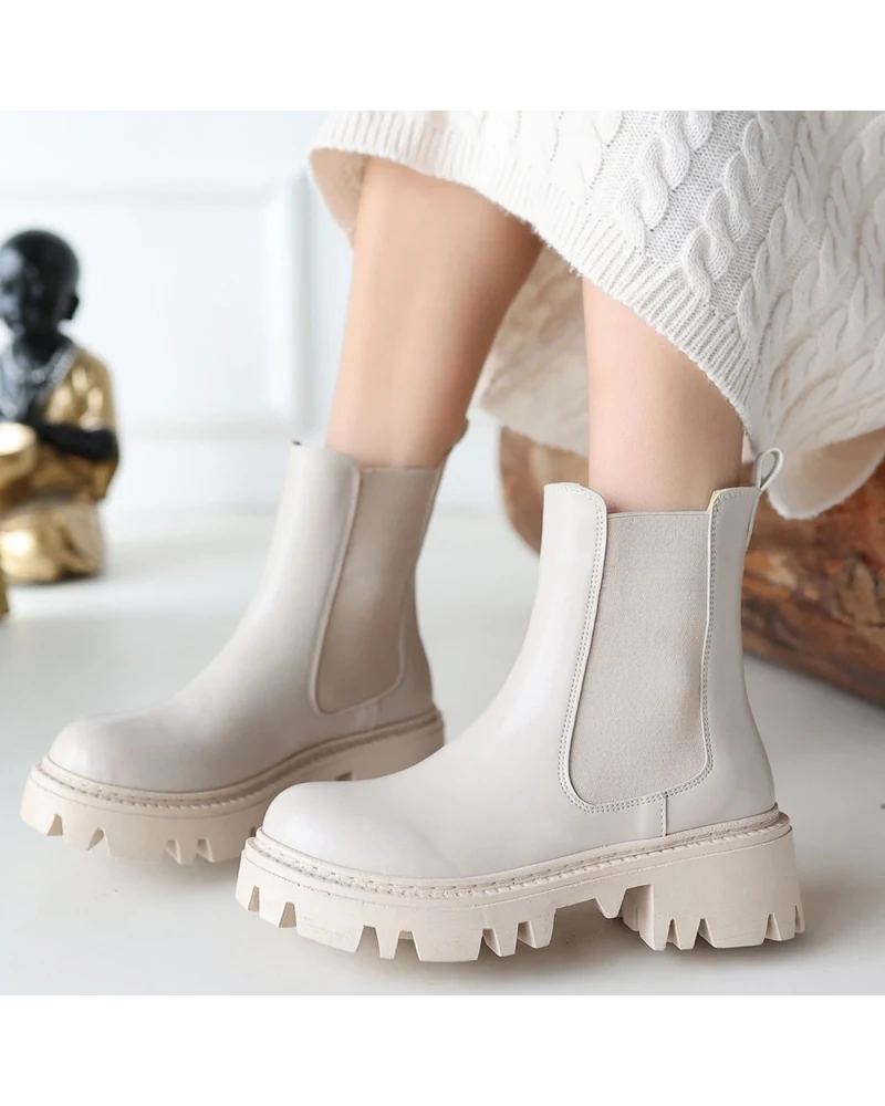 Ninle Bej Cilt Topuklu Bot