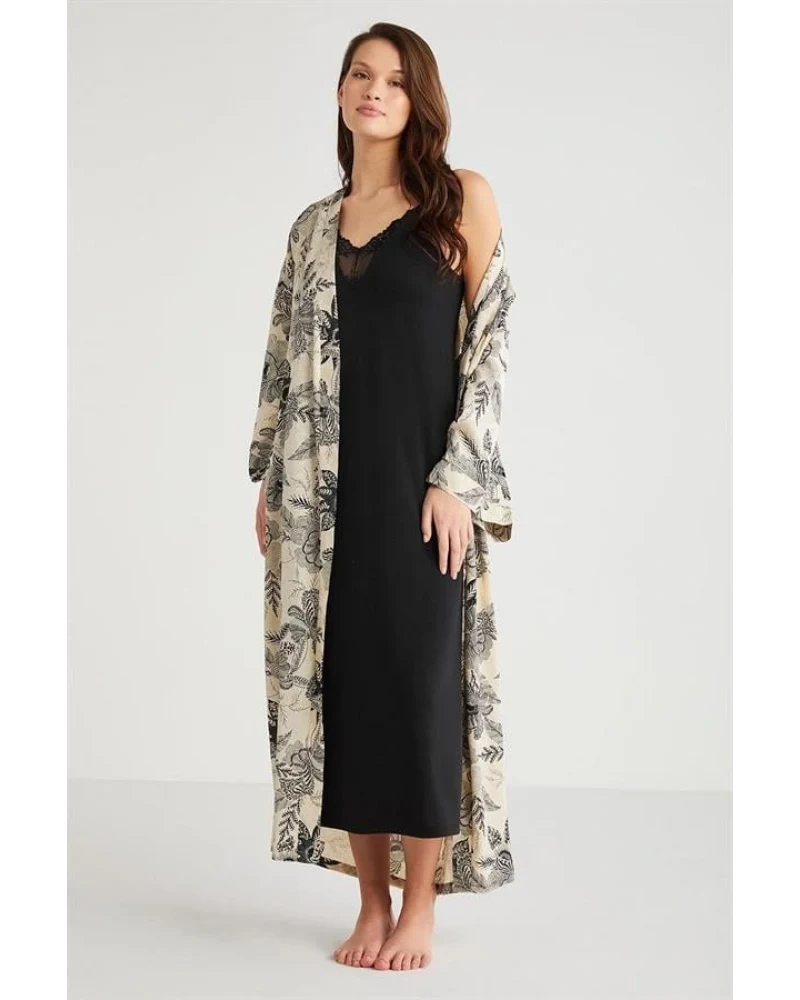 Penye Mood %100 Viskon Çiçek Desen 2'li Sabahlık Gecelik Takımı
