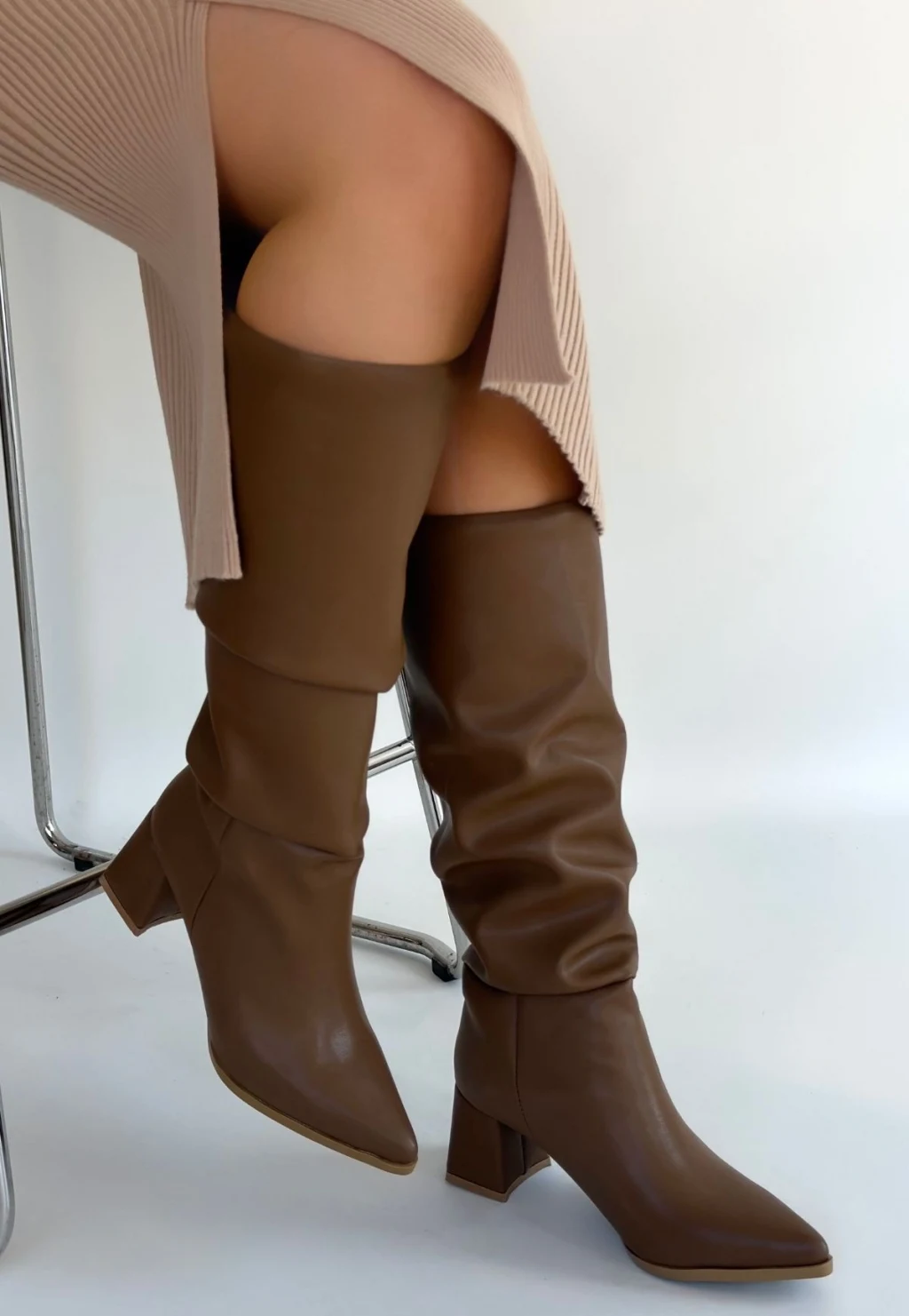 Detay: Topuklu Diz Altı Körüklü Çizme