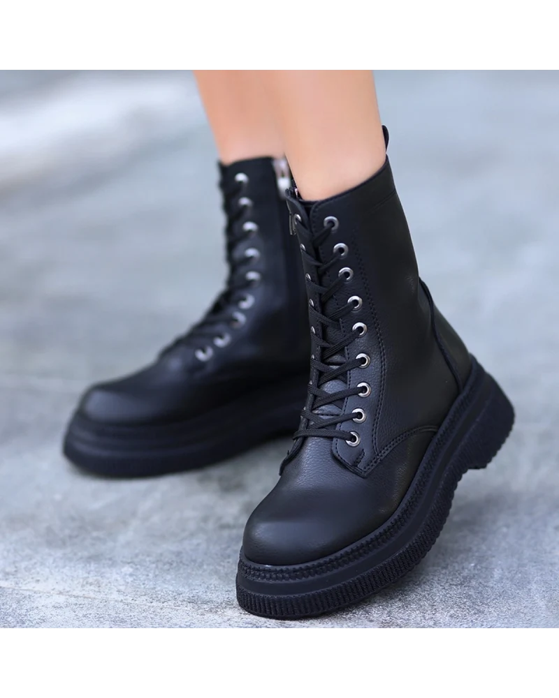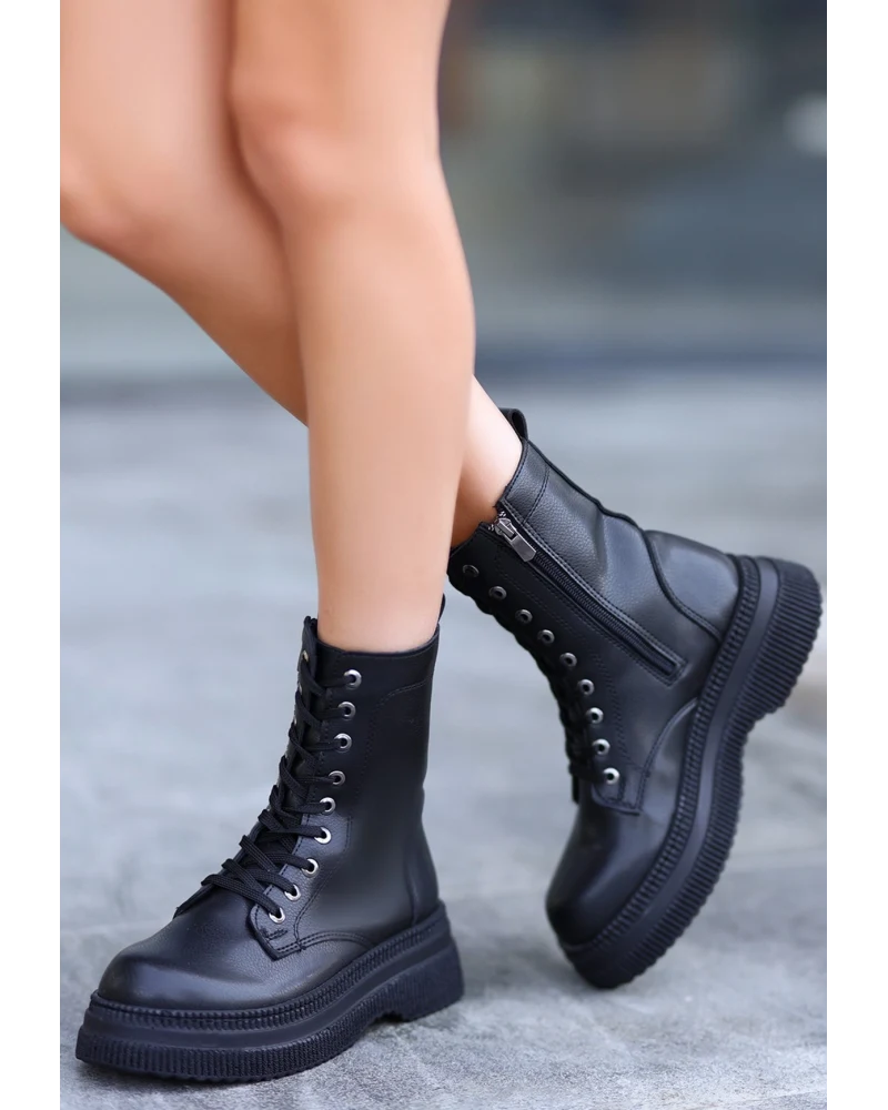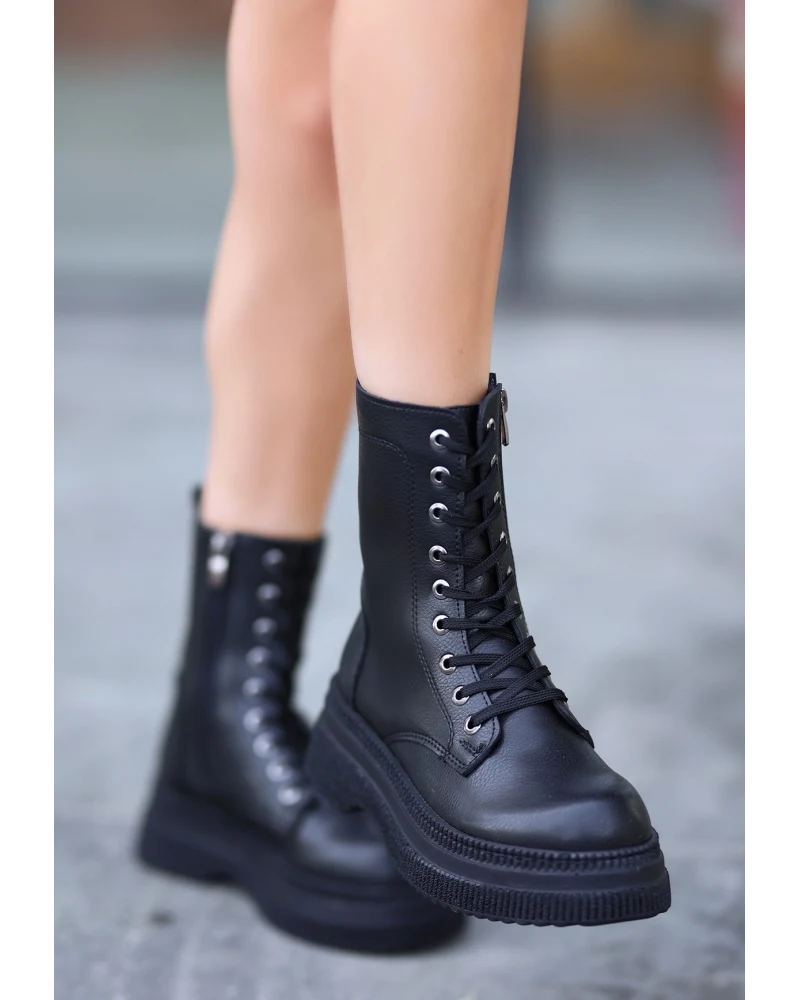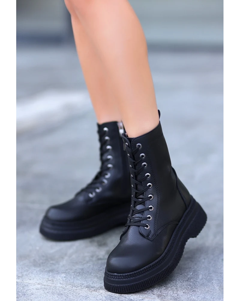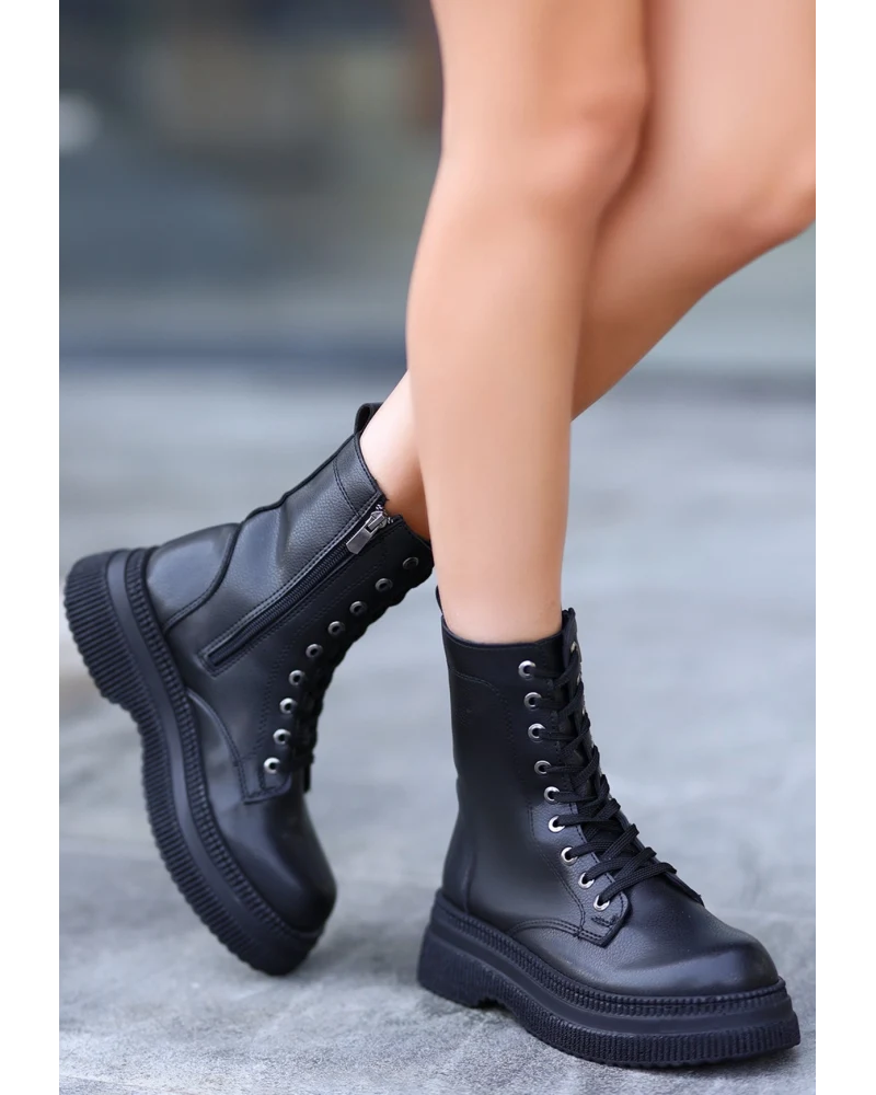 Roxan Siyah Cilt Bağcıklı Bot