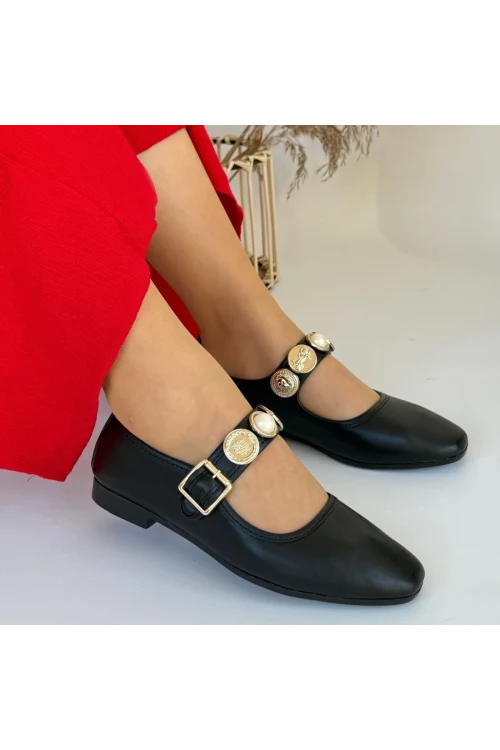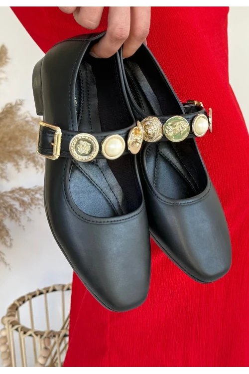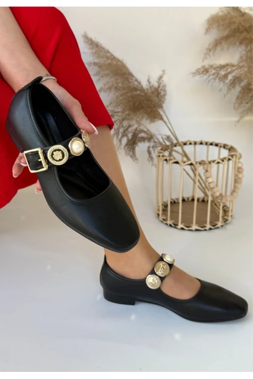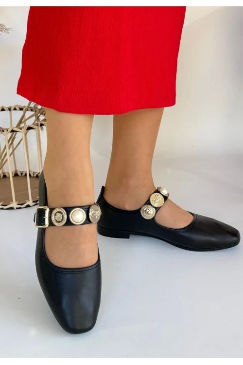 Sarra Bej Saten İşlemeli Babet Ayakkabı