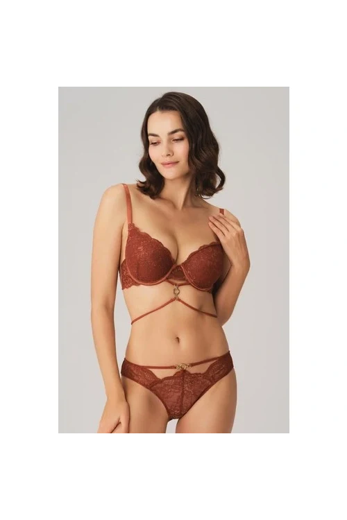 Arias Closet Balenli Destekli Dolgulu Göbek Detaylı Dantelli Sütyen ve String Takım