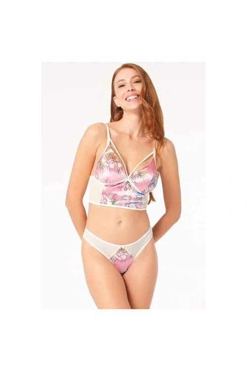 Arias Closet Kadife Balensiz Desteksiz Dolgusuz Yaka Detaylı Çiçek Baskılı Bralet Sütyen ve Sl