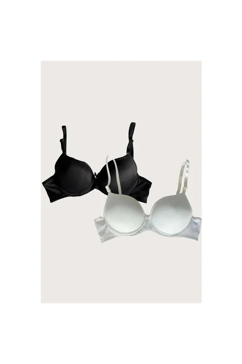 Arias Closet Siyah-Beyaz 2'li Mikro Kumaş Push Up Dolgulu Balenli Günlük Destekli Sütyen