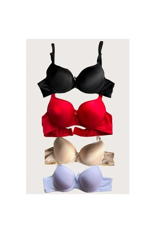 Aria's Closet Siyah-Beyaz-Kırmızı-Ten 4'lü Dolgulu Push Up Micro Balenli Günlük Tek Destekli Sütyen