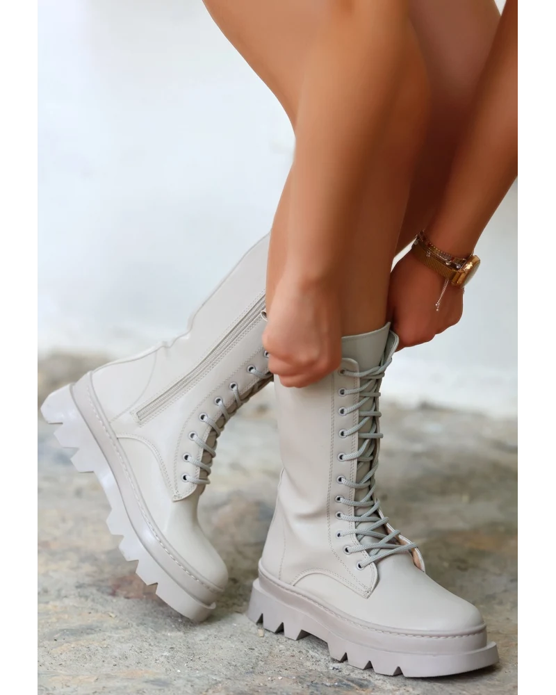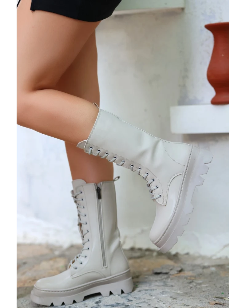 Toir Bej Cilt Bağcıklı Postal