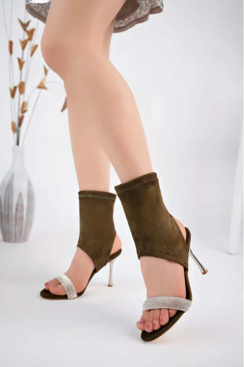 Merdi Yeşil Cilt Topuklu Ayakkabı