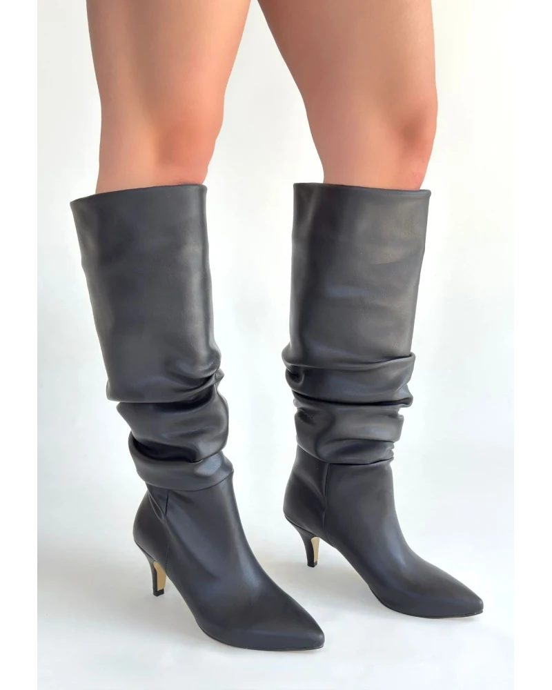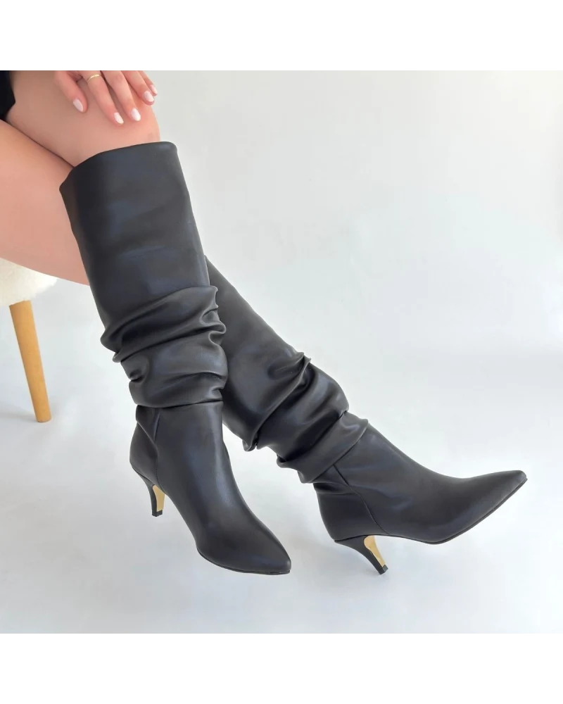 Detay : Topuklu Diz Altı Körüklü Çizme